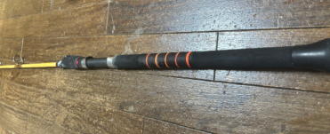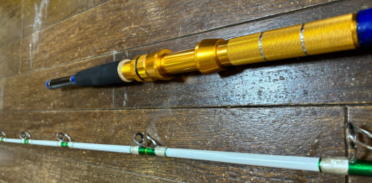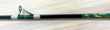 217cm、80-100号 折れたジギングロッドを 2ピース化し、青物用の泳が せ釣りロッドを作成 穂先がグラスのため餌の小魚 の動きが明確に識別できます また曲がりが大きく大物の引 きも吸収し、やり取りが容易 になります。 グリップ部分はジギングロッ ドを使用し、穂先をグラスを 使って新規に作成 穂先と元竿の接続は印籠継ぎ とし新規に加工 |